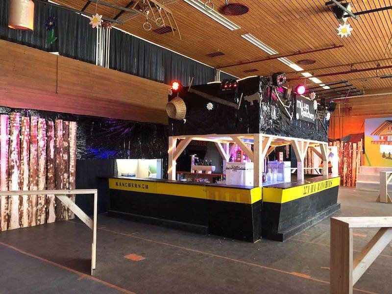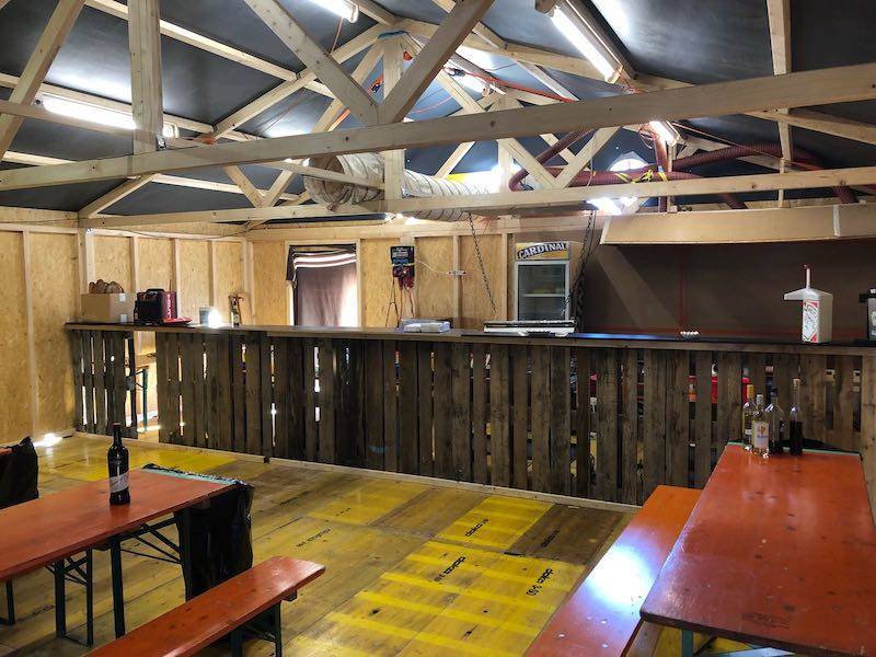 Unsere grosszügige "Frässhötte" bietet Platz für Koch-/Grillzeile und Bedienungsbar. Im vorderen Bereich befinet sich Platz für ca. 4-5 Tischgarnituren.